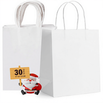 حزمة من 30 كيس هدايا أبيض صغير بمقبض ورقي ملتوي من جيفتساي، مقاس 15×8×21 سم، مناسب لحفلات الزفاف والتسوق وأعياد الميلاد