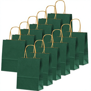 Pack 24 Dark Green Kraft Paper Bags Gift Bags Twisted Paper Handle 16x22x8cm Gift Wrapping Carrier Bags for Christmas Birthday