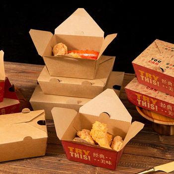 Kraft Paper Custom Disposable Commercial Lunch Box Oil-Proof Korean Style Printed Logo Available for Fried Chicken Snacks