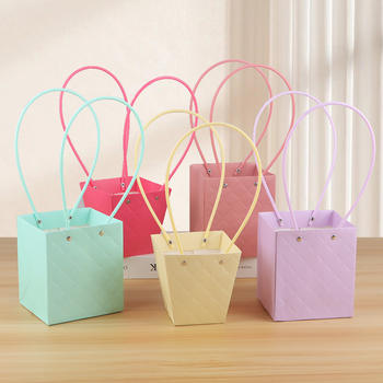 Sac à fleurs portable gaufré Macaron, sac à main haut de gamme imperméable, motif losanges, en carton blanc, forme carrée ou rectangulaire, art floral